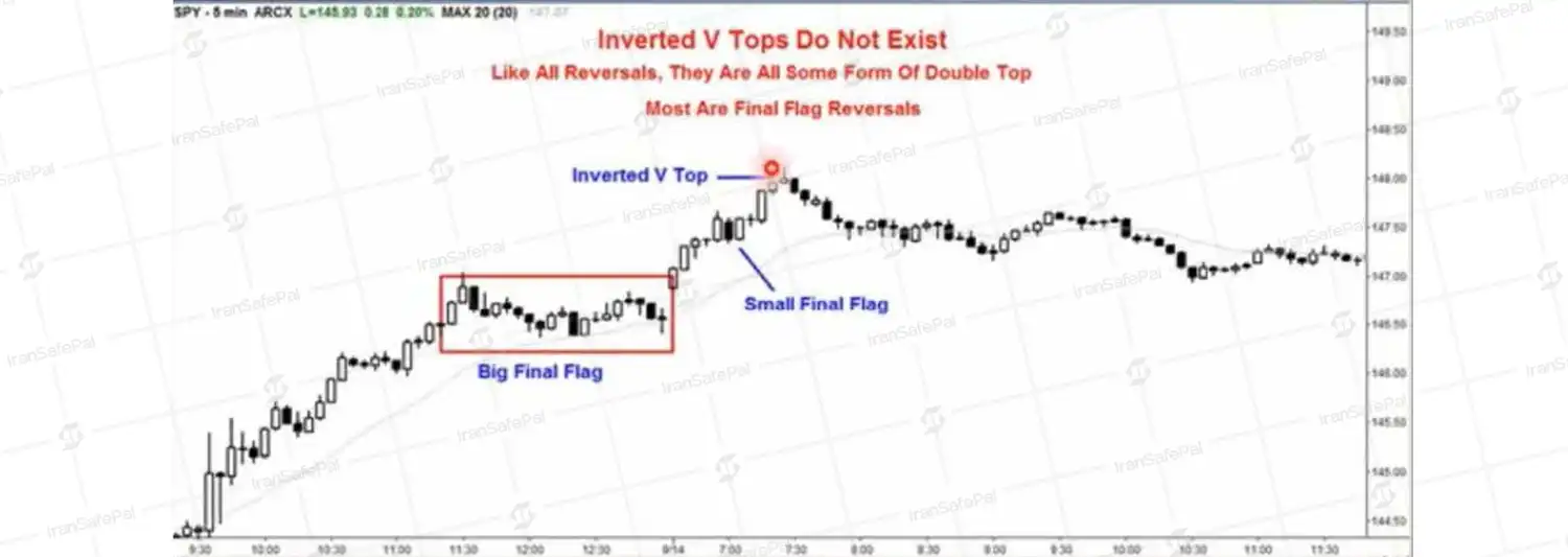 حتی وقتی برگشت روند رخ می دهد ،اکثر اوقات تبدیل می شود به دامنه معاملاتی و نروند در جهت مخالف. اما حرکت در جهت مخالف به اندازه کافی بزرگ هست که بتوانیم سوئینگ کنیم و سودآور باشیم. اکثر برگشت ها، سقف و یا کف دوقلو هستند. برگشت یک سطح میشه تست می شود .مثلاً وقتی بازار بالا میرود، سپس برمیگردد که سطح را تست کنند. پس اگر دقت کنید می بینید که سقف دوقلو شکل گرفته. اکثر برگشت ها، نوعی دامنه معاملاتی را هم شامل میشوند. تمام کف ها نوعی از کف دوقلو هستند. تمام سقف ها هم نوعی از سقف دوقلو هستند. اما گاهی اوقات بهتر است از واژه های دیگری استفاده کنیم تا دقیقا متوجه بشویم که چه اتفاقی در حال رخ دادن است.گاهی اوقات نمی توان الگوی سقف و کف دوقلو را به راحتی دید .و در این حالت بهتر است که از کلماتی دیگر استفاده شود؛ مثلاً پرچم نهایی که یک الگوی برگشتی است. الگوی کفv و الگوی معکوس v در سقف ،وجود ندارد. بلکه چیز دیگری است که معمولاً یک پرچم نهایی کوچک یا گوه است.