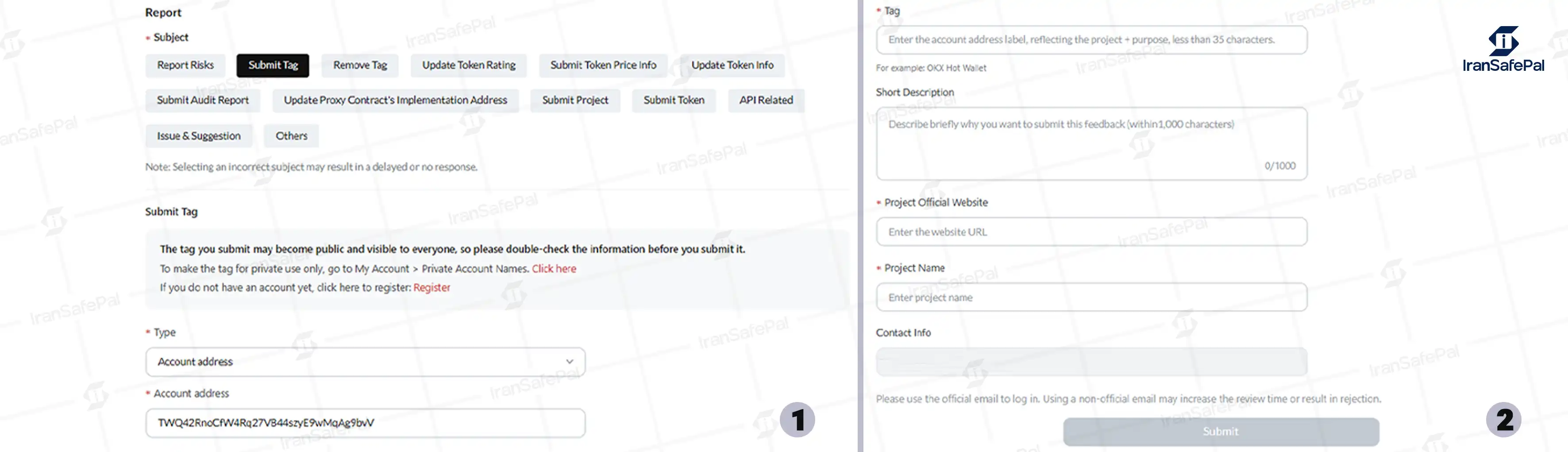 • پس از Submit، معمولاً تیکت یا تأییدیه ایمیلی دریافت میکنید. Tronscan گزارشها را بررسی میکند و در صورت اعتبار، تگ/هشدار عمومی میگذارد