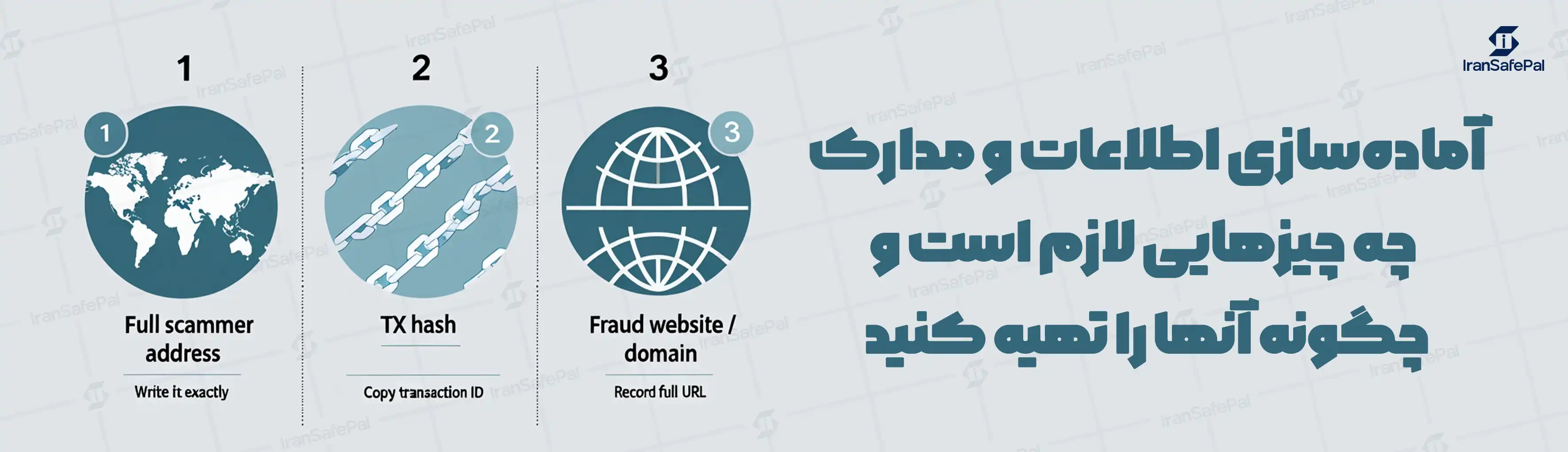 برای اینکه گزارش شما در Tronscan معتبر و اثربخش باشد، باید مدارک دقیق و قابلردگیری ارائه دهید. سه قلم اصلی که همیشه باید آماده باشند عبارتاند از: آدرس کلاه بردار (آدرسی که به آن پول واریز کردهاید)، هش تراکنش (TX Hash) و آدرس/دامنه سایت کلاهبرداری. در ادامه، هر کدام را ساده و گامبهگام توضیح دادهام.